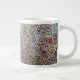 Hearts are hand-painted amidst multiple colorful scribbles, prints and patterns created as mixed media artwork, making this coffee mug a most-interesting sight to behold.