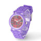 I only have one complaint. I ordered the watch with clear case and strap, and what was sent was white case and strap. I'm going to keep it because 1) it looks very nice in white, and 2) it would take too long to get a replacement made and sent in time for my occasion. Aside from the mix up with the color, the watch does look very good in white. The purple dial is actually sparkly which did not show in the online images. That was a nice surprise. If you like Swatch watches this is very similar to those. It's 33.6mm in diameter, 10.5mm thick, and 40.6mm lug to lug. Stainless steel case back says 3ATM/30m WR, so no swimming or showering or submerging this one. If you like Woodstock, this is a great choice.
