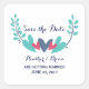 Colorful and whimsical Hearts and Vines Wedding Save the Date Stickers with a cute stylized vine and sweet heart border in a pretty combination of turquoise, blue, and red. This trendy and modern design is easy to customize with your wedding details.
