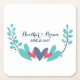 Colorful and whimsical Hearts and Vines Wedding Paper Coasters with a cute stylized vine and sweet heart border in a pretty combination of turquoise, blue, and red. This trendy and modern design is easy to customize with your wedding details.
