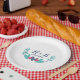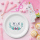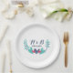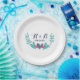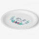 Colorful and whimsical Hearts and Vines Wedding Paper Plates with a cute stylized vine and sweet heart border in a pretty combination of turquoise, blue, and red. This trendy and modern design is easy to customize with your wedding details.