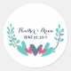 Colorful and whimsical Hearts and Vines Wedding Stickers with a cute stylized vine and sweet heart border in a pretty combination of turquoise, blue, and red. This trendy and modern design is easy to customize with your wedding details.