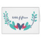 Colorful and whimsical Hearts and Vines Wedding Table Number Card with a cute stylized vine and sweet heart border in a pretty combination of turquoise, blue, and red. This trendy and modern design is easy to customize with your wedding details and table number(s).
