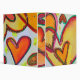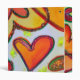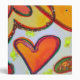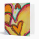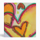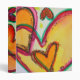 Painting detail of two hearts from the "Laugh" painting. Hearts are yellow, orange, peach, pink, magenta, & red. Media is watercolor with glass glitter.