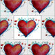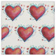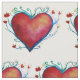 Red watercolor hearts on fabric.