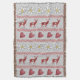 European inspired throw blanket done in light gray with rows of white elelweiss flowers, red deer, red hearts and red and white checkered bands. Customize to add any text you want. Great for the holidays and year around.