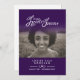 Order of service double-sided simple dark purple and white in our hearts forever funeral program. Simple yet elegant program, replace sample text and photo holders with your own three special photos and information details. Original typography and in our hearts forever graphic and design by Sarah Trett. www.sarahtrett.com for www.mylittleeden.com (Photo credit by Guilherme Stecanella on Unsplash model photo is just a placeholder image for you to replace).
