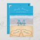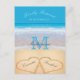 Hearts in the sand Beach Wedding Blue RSVP Postcard
