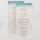 Features two hearts in the sand and the bride's and groom's initials with turquoise water and white sand beach background, great wedding program for summer beach wedding, or tropical destination wedding.