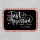 Celebrate love in style with our HEARTS Just Married Script Names Wedding Date Patch for your phone! Featuring trendy white script font typography. Personalized with your names + wedding date. Bold black background and pink accents.