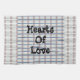 Hearts Of Love is a playful whimsical design sure to capture anyone's heart! This handcrafted design consists of pink stripes layered over an abstract of hearts & flowers and blue & white stripes across the kitchen towel all amidst a blue & white motif!