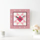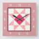 Hearts of Love Quilt Block in Pink Square Wall Clock