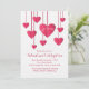 An invitation for lovers. Nine hearts hanging from a string against a chalk-white background with pin polka dots. (FP) Perfect for Valentine's Day, Save the Date Announcements and more.