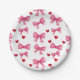 these charming paper plates featuring a cute pattern of pink bows and red hearts. Ideal for birthdays, Valentine’s Day, bridal showers, baby showers, or any girly celebration. A fun and festive way to add a playful touch to your party table!