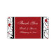 Valentine's Day Wedding thank you labels in stylish red, black, and white with delicate hearts and swirls, the perfect addition to your Valentine's Day wedding, available in matching card, invitations, and envelopes. Perfect for wedding favors.