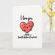 At the center of the card is a shiny ruby-red heart character standing on a plain white background. It has sparkling black eyes, a big happy smile, and soft pink cheeks that look like a sweet blush. A small light spot near the top of the heart makes it look glossy, almost like candy. Thin little arms and legs give it a friendly, lively pose, like it’s waving hello. At the top, the text “I love you” appears in black cursive-style lettering, placed above the heart. At the bottom, “from the bottom of my heart” is written in matching black cursive-style lettering, neatly spaced under the heart. It feels meaningful because the simple picture and direct words make it easy to share real affection with someone you care about 🥰❤️. Hope it helps you share your Valentine’s Day feelings in a kind, honest way.