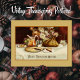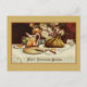 Postcard features a vintage Thanksgiving illustration by Ellen Clapsaddle. A white tablecloth covers the table that is set for a turkey dinner complete with a beautiful bouquet of flowers and a homemade pie for dessert.