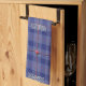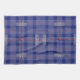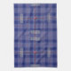 We call the original design by HomeWare on this Kitchen Towel “Mad Plaid in Blue”. The pattern is a basic plaid in shades of heather blue. Over this background are two wavy red lines, one horizontal and one vertical, which cross through the center of the design. The lines are three dimensional, throwing shadows on the plaid, and there is a round red button in the center, where the lines intersect. Over the far ends of the red lines, on four sides, there are blocks of textured, wavy white lines. There are also red dotted lines running through the lighter blue part of the plaid. It looks a bit like a package, all sealed and taped. Thus the name "Mad Plaid in Blue".