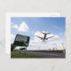 Jet landing at London Heathrow Airport with terminal 4 and cargo sign