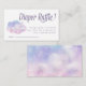 Dreamy heaven sent theme baby shower diaper raffle ticket featuring watercolor illustration of pink and purple cloud. The card asks guests to bring a pack of diaper in a chance to win a prize.
