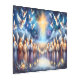 A luminous celestial scene unfolds as a host of angelic figures gathers under a radiant Star of Bethlehem, their wings glowing softly beneath a starlit sky. This ethereal design captures a sense of peace, wonder, and sacred celebration, with angel choirs dressed in flowing robes of gold, ivory, and soft lavender. Floating cherubs fill the night sky above a glowing village nestled in a valley, drawing the viewer into a serene, divine moment. Candlelit evergreens frame the foreground, adding warmth and seasonal charm. This composition evokes the spirit of a holy night and is perfect for inspiring calm and reverence in any holiday setting. Ideal for display in spiritual spaces, Christmas-themed décor, or winter celebrations where you want to convey awe and peace. AI generated artwork.