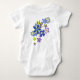 Adorable cartoon of three hula girls dancing surrounded by a floral lei.This design is available in another colorway as well. This original cartoon adorns these infant creepers and t-shirts on the front with a companion print of a cluster of flowers on the back. These designs come in several colorways.