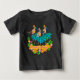 Adorable cartoon of three hula girls dancing surrounded by a floral lei.This design is available in another colorway as well. This original cartoon adorns these infant creepers on the front with a companion print of a cluster of flowers on the back. These designs come in several colorways.