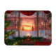 Sitting by the Christmas tree looking out the window on a snowy landscape watching the sunrise on Christmas morning.