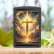 This incredibly moving and symbolic design captures the powerful theme of Heaven's Gate—the glorious promise of eternal peace and the celestial dawn. The artwork, featured on a lighter, displays a breathtaking, hopeful scene: a large, ornate golden cross is centered in the heavens, surrounded by radiant, gold-tinged clouds that part to reveal a blue sky. The cross sits above a serene sunset or sunrise over water, with intense light rays creating a path from the heavens to the horizon. The design symbolizes the divine presence over all the earth. The comforting message of this eternal hope is quoted from Revelation 21:4: "He will wipe every tear from their eyes." This profound image offers deep comfort and inspiration as a timepiece. This high-quality lighter is a spectacular dedication to faith, honoring the spiritual journey of hope and glory.