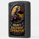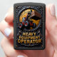 This intricate and powerful design is a unique tribute to the specialized heavy equipment operator who expertly commands the versatile telescopic handler. The central image features a robust, red material handler on massive, rugged tires, using its extended boom and fork attachment to lift a heavy pallet of construction blocks. The machine is centered within a dramatic, circular frame with a golden, almost exploding textured background, symbolizing the power and intense nature of the construction site. The entire scene is set against a dark, heavily ornate industrial emblem with gold and bronze scrollwork, giving the piece a prestigious and professional aesthetic. This design celebrates the operator's precision, dexterity, and critical role in efficiently managing high-reach and heavy material logistics. The bold, golden text "HEAVY EQUIPMENT OPERATOR" is clearly displayed, making this lighter an excellent, strong gift that honors the skilled professional who masters this all-terrain lifting apparatus.