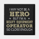 I may not be a hero, but I'm a Heavy Equipment Operator so close enough humorous word art in sans-serif and doodle cross-hatch font lettering in white and golden yellow.