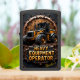 This dark, rugged, and imposing design is a powerful tribute to the heavy equipment operator who commands the immense lifting and moving capacity of the wheel loader. The central image features a prominent, yellow and black wheel loader with massive, heavy-duty tires, shown actively churning through thick mud and dirt. This imagery emphasizes the machine's primary role in excavation, material moving, and mastering difficult, rugged terrain. The loader is centered against a dark, textured background and framed by a prominent, ornate industrial emblem detailed with dark metallic coils, bronze rivets, and a circular wooden texture, lending the piece a commanding and prestigious aesthetic. This design celebrates the operator's skill, control, and vital role in earth-moving and large-scale site preparation. The bold, golden text "HEAVY EQUIPMENT OPERATOR" is clearly displayed, honoring the professional who directs the essential movement of materials on the job site.
