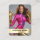 Memorialize your cosplay character with custom coscard trading cards. This design features a shiny gold background and name plate to highlight your text and images. Upload your photos and customize the text fields for a unique design that personalizes your coscards. Paste the URL of your web page or social media account to easily connect with friends and followers.