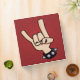 Heavy metal, rock and roll, devil horns hand sign with a black leather studded bracelet.