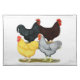 Here are four big boys for the poultry yard or the dinner table: Australorp, Rhode Island Red, Buff Orpington and Barred Plymouth Rock.