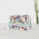 This greeting card has an abstract digital watercolor in ocean blue and other pastel colors as well as a stripe with the Hebrew birthday expression: “Yom Huledet Sameach.” This card is an elegant mailing item to send to your loved ones. You can also match it with stickers, envelops, and stamps.