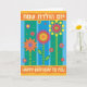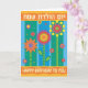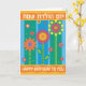 A graphic floral illustration is featured on this birthday card with greetings in Hebrew and English.