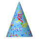 What a cheerful paper party hat! The background has balloon, ribbons and confetti. You can change the name of the birthday child.