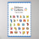 This great poster will look wonderful on the wall of the kids' room or a classroom! The text on top reads Hebrew Letters in English and Ha'alef Beit Ha'ivri in Hebrew. The body of the poster features the entire Hebrew alphabet with colorful cheerful patterns.