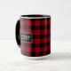 This rustic mug features trendy black and red buffalo plaid, also known as buffalo check, lumberjack plaid, or Christmas plaid, with your own Hebrew name. This mug will make you feel like going camping or fishing and getting your lumberjack on.