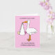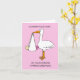 A cartoon of a giant stork holding a baby in a white sheet that hangs from the stork's beak. The words 'Congatulations on your hebrew naming ceremony' accompany the image.
