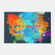 The Hebrew word "shalom" (meaning 'peace' but also 'hello') in an artsy form over a colorful paint splashes background.