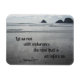 Pacific Coast beach, with water and rocks in background and Bible Verse of perseverance: "Let us run with endurance the race that is set before us. Hebrews 12:1"