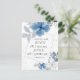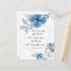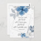 Inspirational scripture postcard depicts a simple floral watercolor design with a modern double frame adorned with blue and grey flowers and leaves. It features Bible Verse Hebrews 13:5, ... God has said, "Never will I leave you, Never will I forsake you."