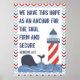 This nautical theme poster has a chevron border in blue, red and gray, as well as a red and white strip lighthouse with ocean waves surrounding it. A blue whale comes to the surface. The text reads We have this hope as an anchor for the soul, firm and secure". Personalize the text if you'd like to revise the wording. This text is based on Hebrews 6:19. Other sizes available for this poster. If the items do not size correctly just message me and I can adjust it for you.