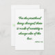 This greeting card shows the "Hebrews 7:12" KJV bible scripture verse in a unique print font with light green letters dark green outline plus bible citation in this biblical verse and theme from the King James version with the words "With God You Can!" on the back. Made with high quality, full color printing on a 3.5" x 5" (portrait) or 5" x 3.5" (landscape) matte paper made and printed in the USA.