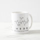 Heddy spelled out in amino acids as H E D D Y (Histidine Glutamic acid Aspartic acid Aspartic acid Tyrosine) on a mug for the scientist in you.