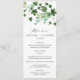 A romantic floral a bouquet of soft blushing snowberry, adn vibrant ivy leaves and foliage adorns this elegant typography menu.