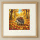 Step into a peaceful woodland dream where gentle animals wander through warm forests, streams, and golden leaves. This whimsical storybook illustration of an adorable hedgehog collecting apples brings a cozy fairy-tale atmosphere to nurseries, children's rooms, and quiet reading corners.