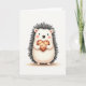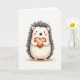 This card shows a cute hedgehog with a round, light cream body sitting against a plain white background. Its quills form a dark charcoal ring around its head and back, giving it a cozy, textured look. The hedgehog has wide, shiny eyes, a small upturned nose, and a gentle smile, with soft pink cheeks that make it look a little shy 😘. In its tiny paws, it holds a heart-shaped cookie dotted with small chocolate-brown spots, like a sweet treat meant for someone special 💘. The colors stay calm and simple—mostly whites, greys, and warm browns with hints of pink—so the focus stays on the little gift. There isn’t any text shown on the front, so the picture does all the talking. It feels like a quiet moment of affection, perfect for romance or close friendship ❤️.
